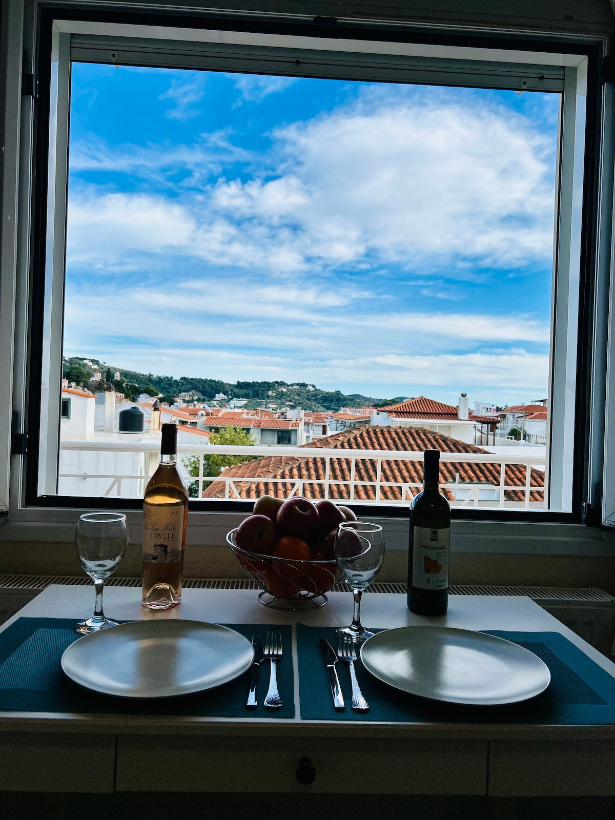 Bellissimo appartamento, appena ristrutturato,con splendida vista mare, a cinque minuti dal porto,vicino a tutto, raduno, negozi, intrattenimento,vicino alla cappella di Agios Nikolaos. Completamente funzionale,confortevole, moderno con aria condizionata in tutte le camere. La casa viene disinfettata prima e dopo ogni ospitalità. Veranda gratuita con splendida vista,soggiorno e tenda da sole. Ideale per il vostro soggiorno nel villaggio di Skiathos.