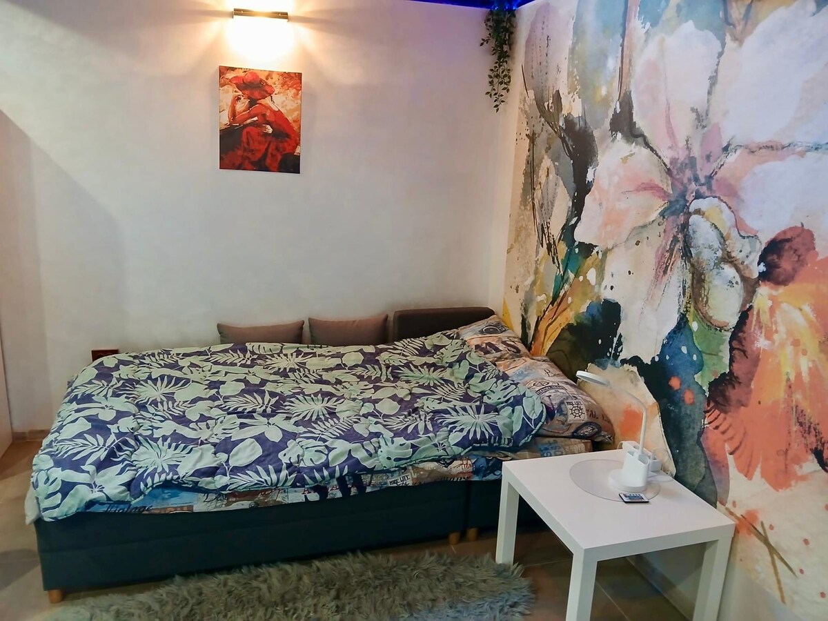 Rilassati e rilassati in questo spazio calmo ed elegante. Un appartamento molto accogliente e pulito dove si può gustare un bicchiere di vino con un buon libro in mano o giocare a un divertente gioco da tavolo. L'appartamento ha una camera da letto e un divano letto. Per chi ha difficoltà a svegliarsi senza una tazza di caffè caldo, proponiamo una caffettiera con capsule e diversi tipi di caffè. L'appartamento è situato vicino a una fermata dei mezzi pubblici.