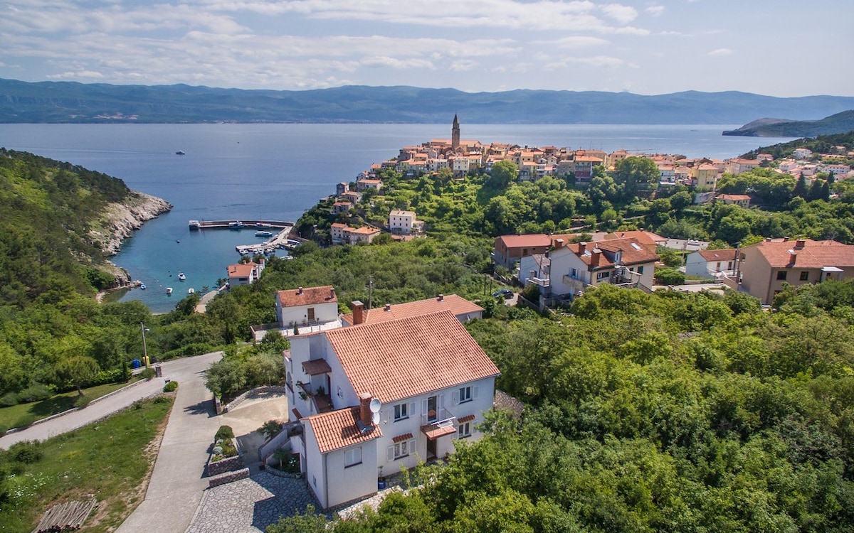 Beautiful house on a sea cliff is located in old central part of Vrbnik,100 meters to store,bakery, restaurants and bars,300m to the first beach. Completely isolated and full privacy for guests who can enjoy most beautiful view on the sea from huge private terrace. So don't be afraid to come and enjoy peaceful and safe holiday to recover energy