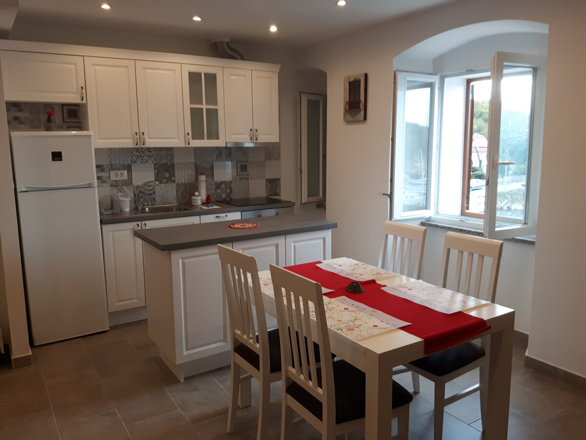Lussuoso appartamento a 5 stelle su due piani di circa 70 m², in una tradizionale casa in vecchio stile mediterraneo, al 2° piano con ingresso indipendente. L'appartamento è stato completamente ristrutturato nel 2016. L'appartamento si trova sul lungomare, dove è possibile raggiungere facilmente a piedi ristoranti, caffetterie e bar. Il negozio di alimentari e la stazione di servizio più vicini distano circa 10 minuti a piedi e 3 minuti in auto.