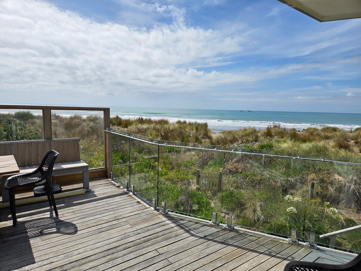 Confortevole e accogliente bach sulla spiaggia con vista sull'oceano. Lo spazio dispone di due camere da letto, una zona giorno open space e una cucina. SI PREGA DI PORTARE LE PROPRIE LENZUOLA E FODERE PER CUSCINI. Piumoni, coperte, cuscini e asciugamani sono forniti. La terrazza coperta è il luogo perfetto per rilassarsi e guardare le onde. Ci sono il wifi e uno schermo TV con una porta HDMI, o può essere collegato a Chromecast (senza TV satellitare). Tè e caffè (senza latte). Non ci sono negozi a Ocean Beach, ma Havelock North è a soli 20 minuti di auto.