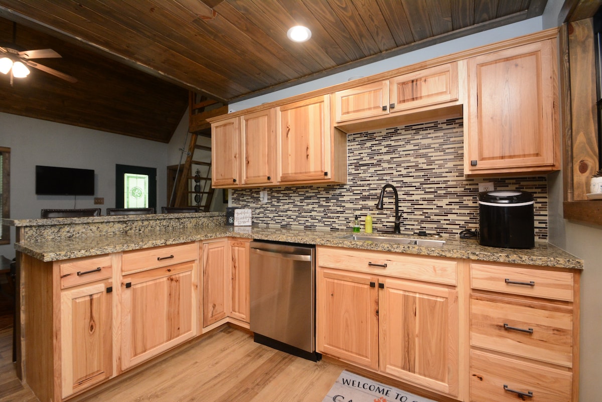 Rifugiati nel nostro incantevole chalet con 3 camere da letto immerso nel bosco! Goditi una serena vista sul laghetto, internet ad alta velocità, smart TV, focolare e una vasca idromassaggio privata a un costo aggiuntivo. La suite padronale dispone di un letto matrimoniale e di un portico coperto. I bambini adoreranno i letti a castello e i giochi. Loft aggiuntivo con letto matrimoniale. Perfetto per lavorare da remoto e divertirsi all'aperto! Prenota subito il tuo soggiorno!