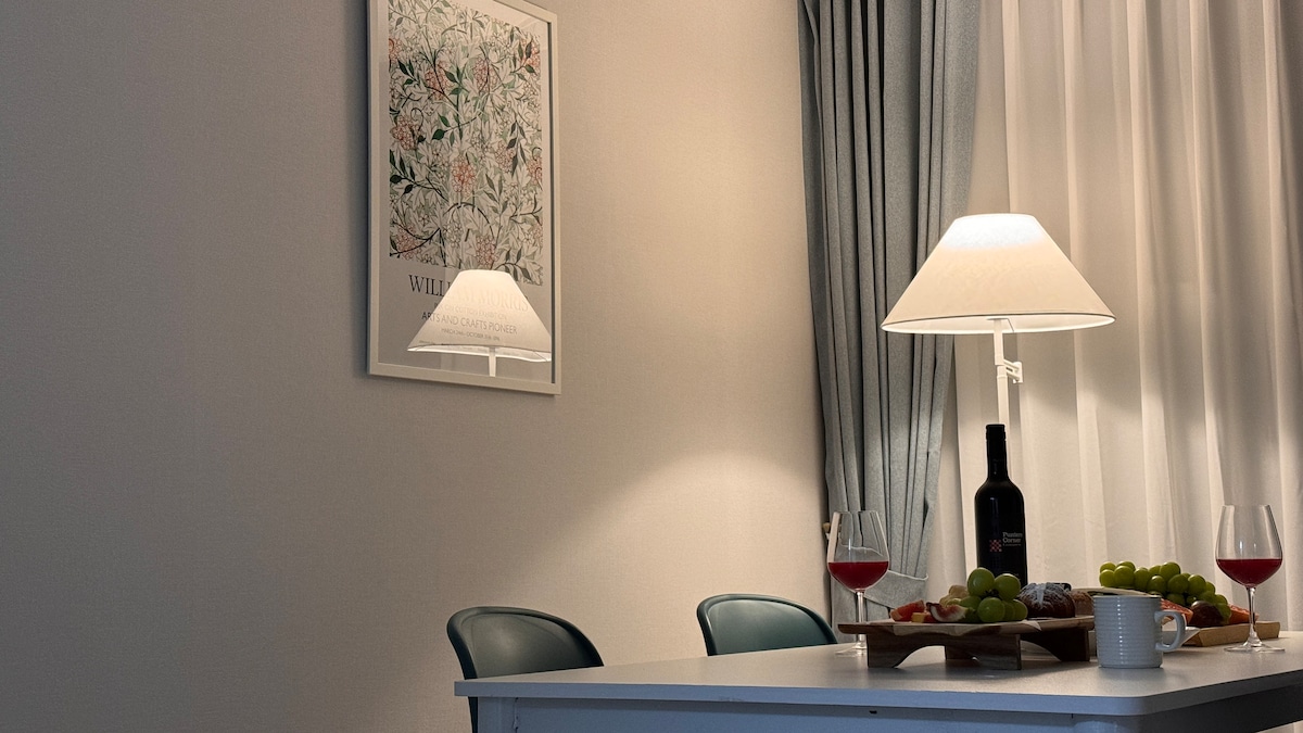 Si tratta di un nuovo edificio con vista sull'oceano e sul ponte Dolsan, quindi è spazioso e pulito.🌊🩵 È vicinissimo alle principali attrazioni, ed è un luogo ideale per amici e amanti o famiglie da 2 a 4 persone per stare insieme. Si tratta di una struttura duplex, con soggiorno, cucina, bagno e camera da letto al primo piano (spazio separato dal soggiorno, letto matrimoniale), e al secondo piano c'è un materasso che può ospitare comodamente due persone. Puoi goderti il mare notturno di Yeosu e la vista notturna che si affaccia sull'alba mattutina e sul mare di fronte al Namhae da tutti gli spazi. Inoltre, al secondo piano è installato un filo di calore, quindi non devi preoccuparti del freddo in inverno. In estate, l'aria condizionata del sistema è installata, così potrai rinfrescarti e goderti la vacanza. (1 soggiorno, 1 camera da letto, 2 in totale) Fornito da Disney Plus ott Si trova a 1 minuto di auto dalla stazione di Yeosu Expo. Le funivie marittime, Big O Show, Minam Cruise Fireworks Show, Yeosu Romantic Pocha Street, Odongdo Island, Aqua Planet e Marine Park sono tutti raggiungibili a piedi. Puoi anche vivere a Yeosu per un mese, quindi ti preghiamo di contattarci. 🏡❣️
