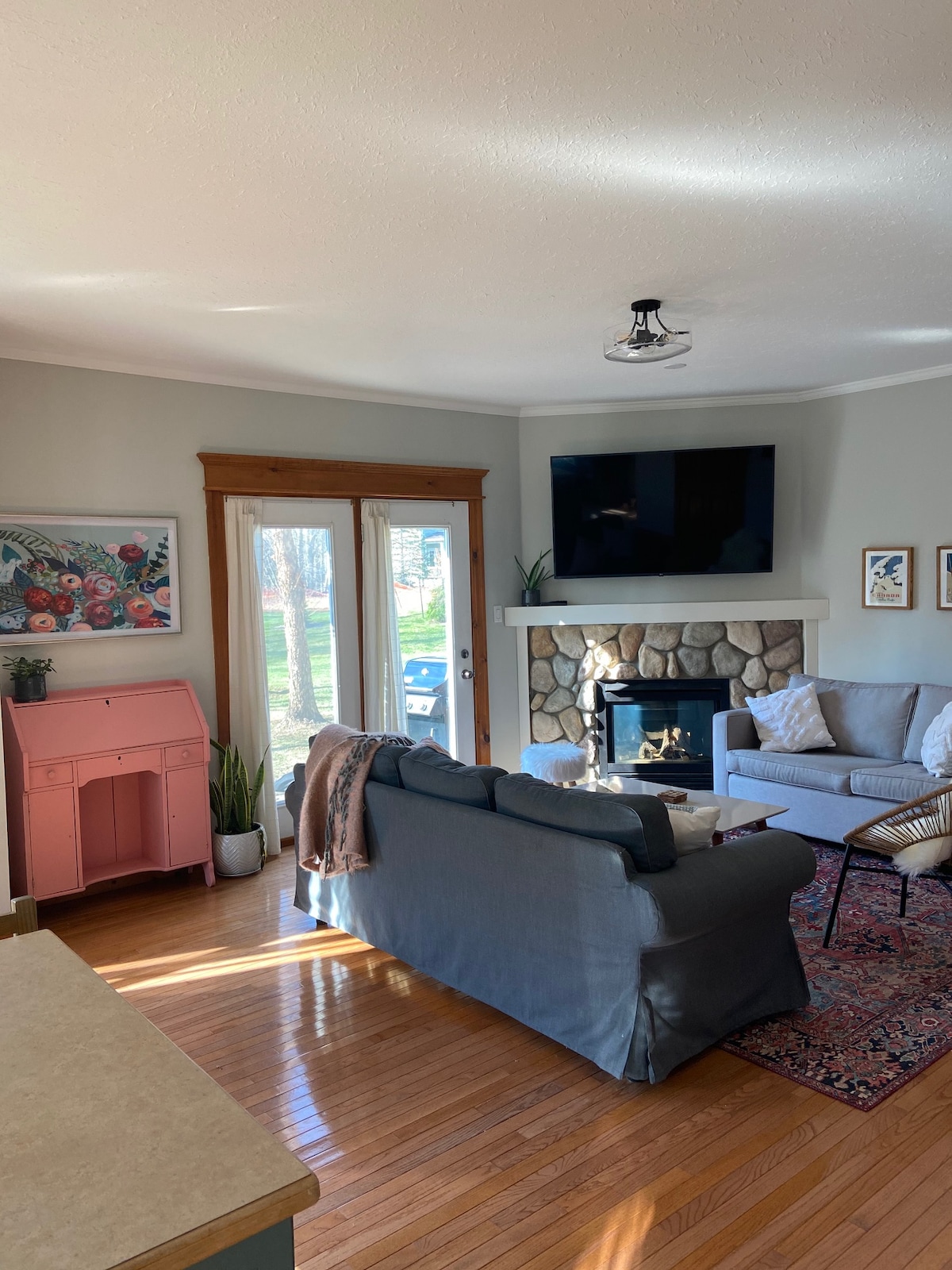 ACCESSO DIRETTO ALLE PISTE DA SCI dal terrazzo posteriore (a seconda della neve)!! Nota la quantità di comodi posti a sedere per NOVE PERSONE intorno alla TV, di cui molti altri alloggi sono privi. Alla fine di una lunga giornata sugli sci, avere un posto comodo dove tutti possono sedersi è ciò che manca nella maggior parte degli chalet. Goditi il bellissimo chalet al PIANO TERRA ristrutturato della nostra famiglia, con 2 camere da letto, 2 bagni e 6 letti, situato in posizione strategica accanto al Blue Mountain Inn. Blue Mountain Village dista 7 minuti a piedi. Posizione, posizione, posizione