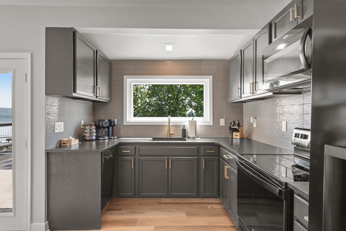 Prenditela con calma in questo spazio unico e rilassante. L'intera casa è stata recentemente ristrutturata con tocchi curati e un'atmosfera eclettica. I servizi includono una stufa a legna, materasso Sleep Number, piano cottura/forno a gas Viking, terrazza fronte fiume con griglia a propano, un ingresso coperto e una vista a 180 gradi sul fiume nella parte superiore della proprietà! Siamo molto entusiasti di accogliere gli ospiti e speriamo di offrire un'esperienza memorabile per tutti. I cani ben educati sono i benvenuti, su richiesta. Stufa a legna 25 $/notte.
