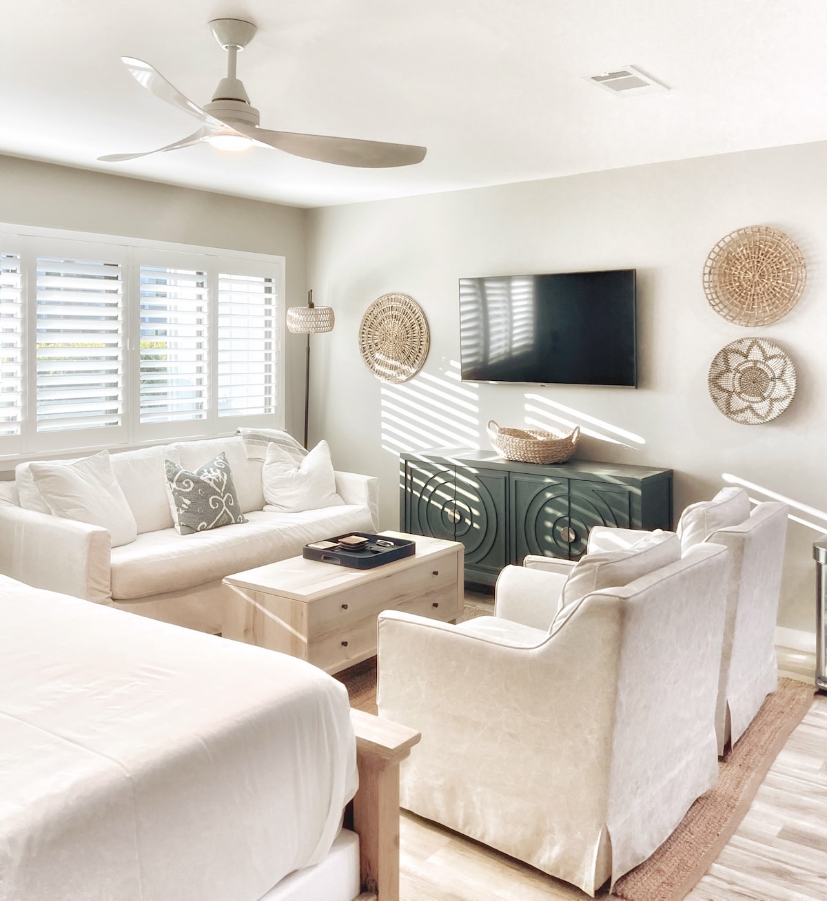 Steps from the beach, The Seagrove Studio is the perfect place for a family holiday, romantic getaway, or remote work. Neighbored by an organic cafe, local-favorite restaurants, and a fresh seafood market, the modernized space includes luxurious linens, a well-equipped kitchen, dedicated workspace, Samsung Frame smart TV, Nespresso machine, and beach chairs. Enjoy your morning coffee in an Adirondack chair on the private patio or take the short walk across the street to the world-class beach 🏖.
