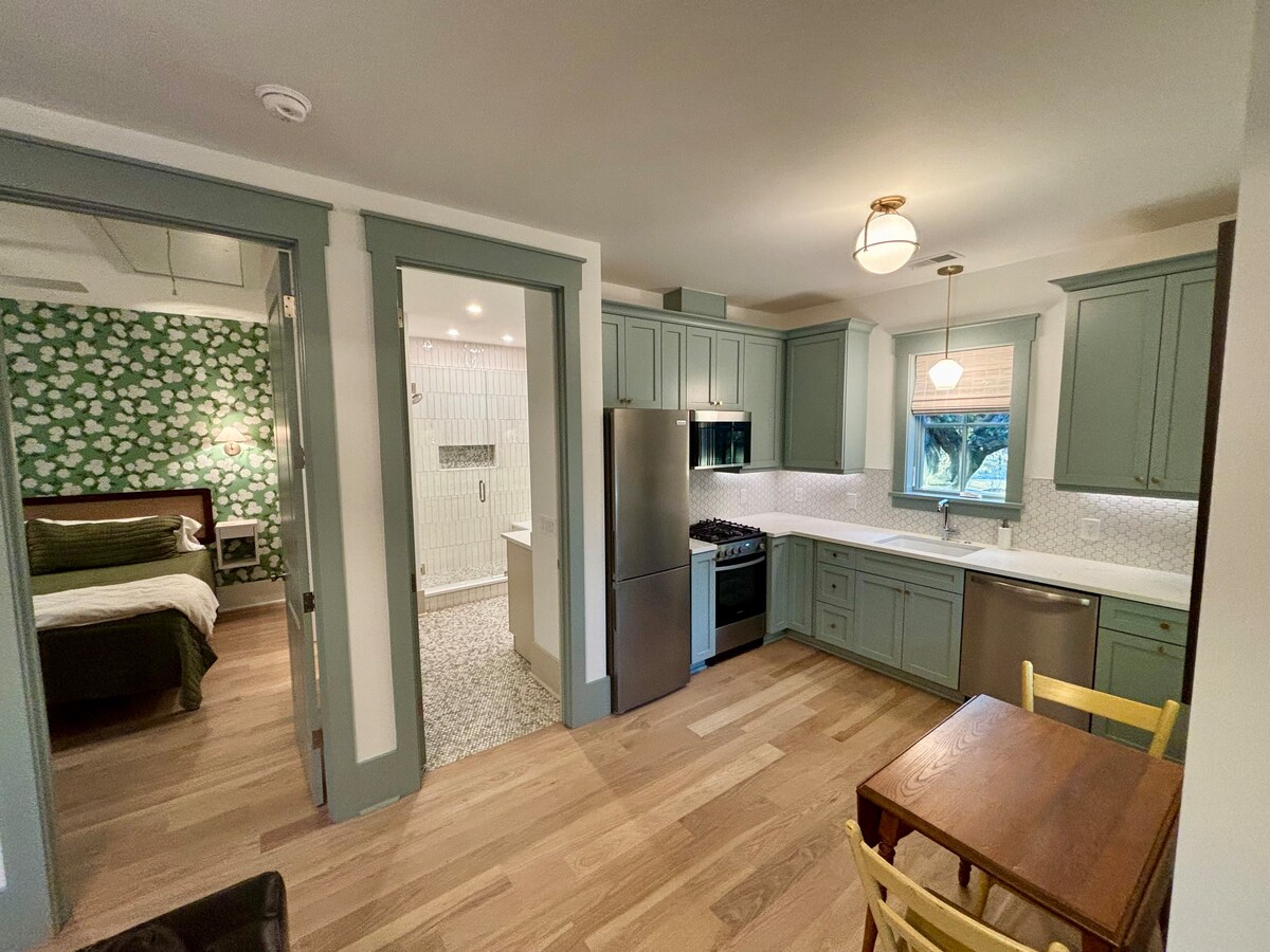 Soggiorna in grande stile a Fire Tower, un appartamento costruito nel 2023 appena fuori da King Street. Questo rifugio con 1 camera da letto e 1 bagno è dotato di un lussuoso letto king-size con bagno privato, cucina completa, Smart TV e balcone privato. Goditi i comfort moderni, tra cui il WiFi e il parcheggio privato. Rilassati sulla terrazza condivisa con vista sullo skyline o nel cortile e sulla terrazza. Situato in posizione perfetta per esplorare i ristoranti, i negozi e la storia di Charleston.