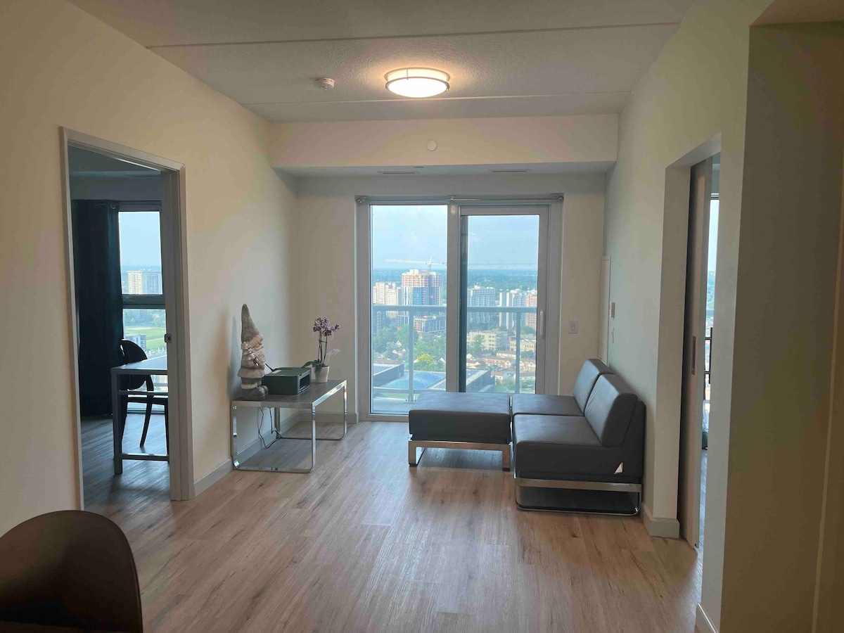**Le vasche idromassaggio sono aperte! **Alloggio Airbnb con licenza completa: nessun problema durante il soggiorno! **Splendidi arredi d'interni, esperienza unica degli ospiti ** Servizi impareggiabili in città! Devi dare un'occhiata alle foto dei servizi ** Appartamentoangolare con splendida vista sulla città ** Posizione! Cuore di Kitchener, in posizione centrale rispetto a negozi di alimentari, ristoranti/bar alla moda, graziosi negozi locali, parchi e vita cittadina ** 3 minuti A piedi dalla stazione GO. 126 Weber St. W **Across Goo-gle Head office w/ LRT rail at doorsteps