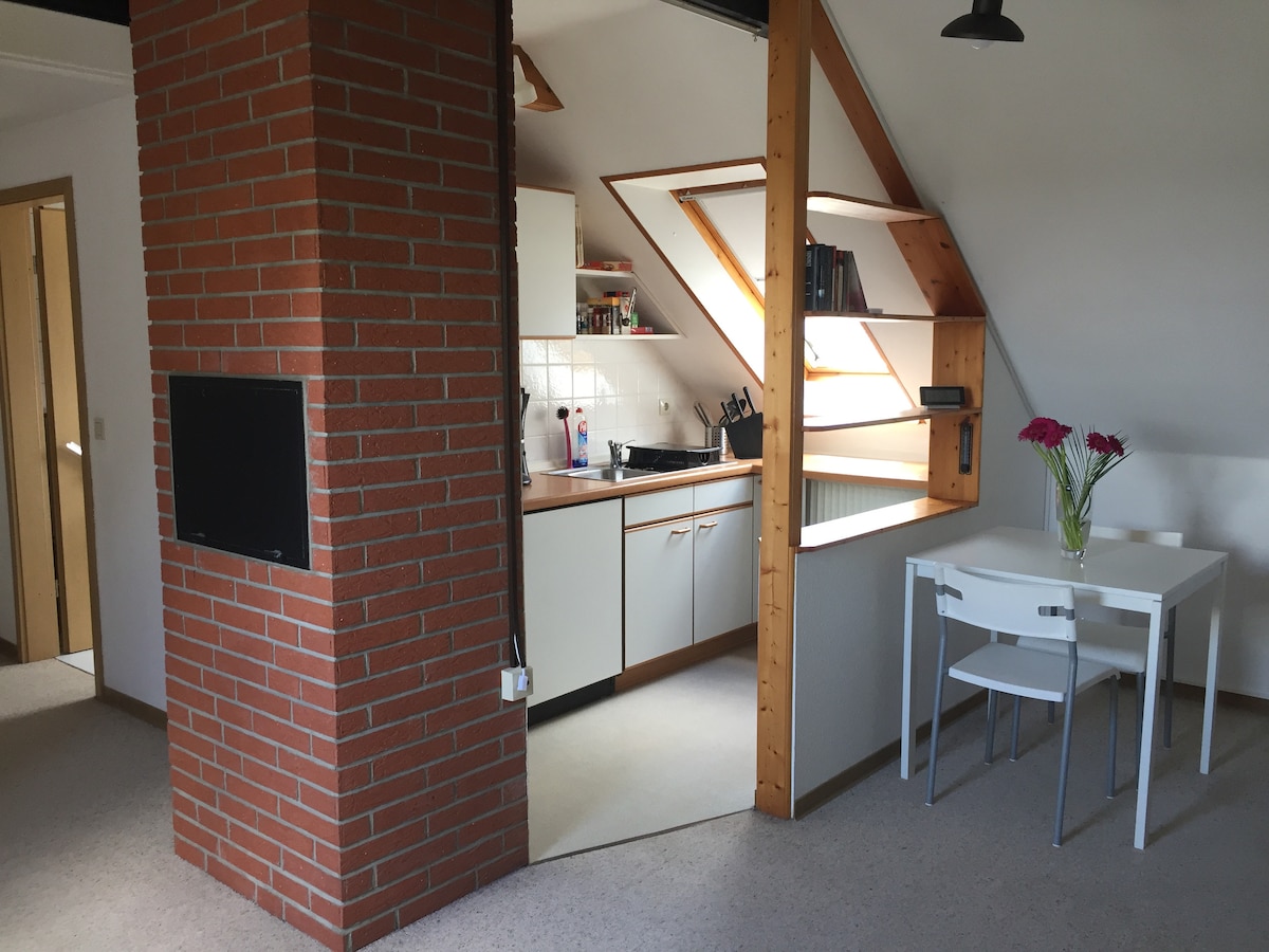 Piccolo accogliente appartamento con 1 camera da letto con ingresso indipendente tramite una scala esterna in una posizione senza uscita, a circa 4,5 km da Flensburg. La fermata dell'autobus si trova a circa 300 m di distanza. L'appartamento ha un bagno con doccia e un ampio guardaroba. Nell'appartamento c'è una grande TV nuova, il letto può essere spostato in un letto matrimoniale. Inoltre, nell'appartamento c'è naturalmente una macchina per il caffè, un forno a microonde, un piccolo divano e un comodo tavolo da pranzo. Vengono fornite lenzuola e asciugamani.