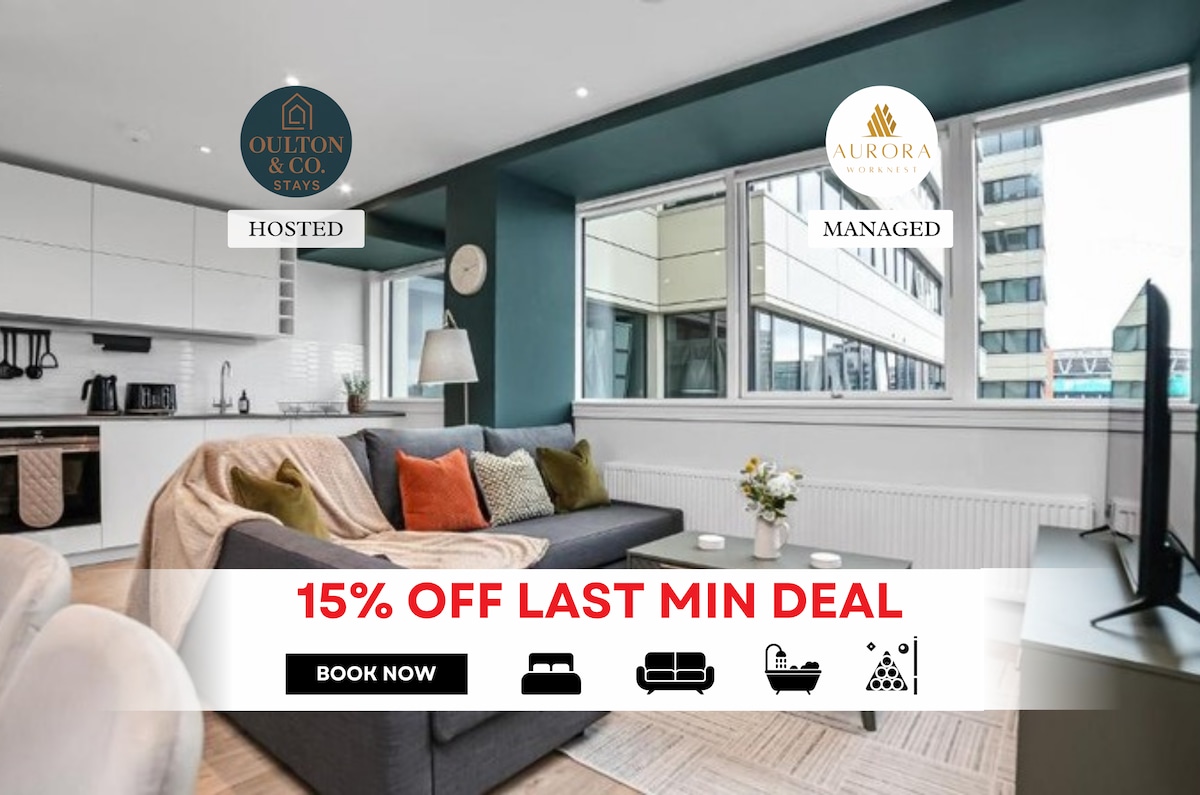 Che tu sia in città per un concerto, una partita di calcio o semplicemente per esplorare la città, questo appartamento in un edificio moderno e sicuro si trova a soli 5 minuti a piedi dallo stadio di Wembley e dall'OVO Arena. Boxpark e London Designer Outlet nelle vicinanze. Circondato da ristoranti, caffè, parchi e negozi di alimentari. Goditi un'elegante zona giorno open space, un balcone privato, una cucina completamente attrezzata con elettrodomestici di alta qualità e un bagno moderno. Wi-Fi gratuito e Smart TV per il tuo intrattenimento. Mantieniti in forma con l'accesso a una palestra in loco.