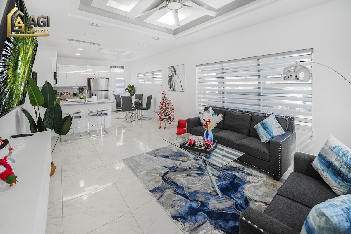 Scopri il design elegante e il comfort moderno del nostro Airbnb chic. Immerso in un quartiere vivace, questo elegante appartamento presenta arredi moderni che creano un'atmosfera invitante. La cucina completamente attrezzata e la confortevole sala da pranzo rendono facile gustare i pasti a casa. 🍽️ ☕️ Esci e scopri una lussureggiante area piscina, ideale per prendere il sole o goderti una nuotata rinfrescante! ☀️🏊 Grazie al facile accesso ai centri commerciali locali, il nostro appartamento è la base perfetta per la tua vacanza!
