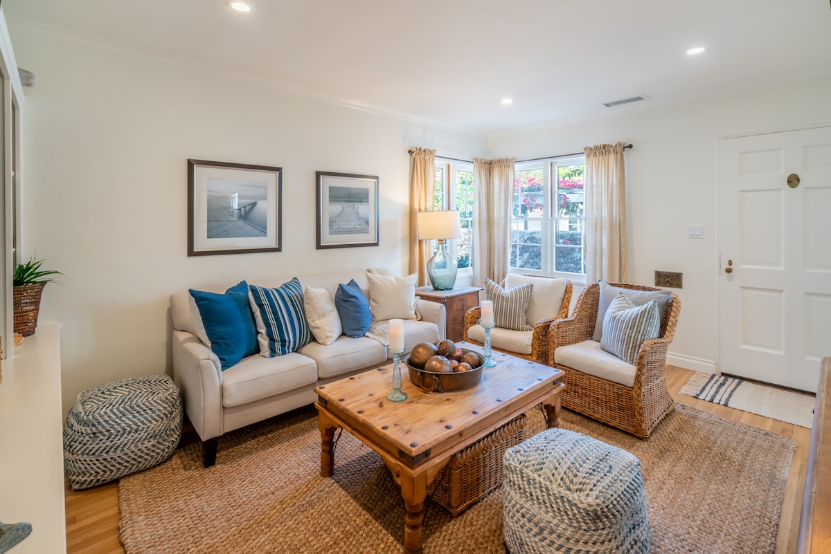 *Featured in Condé Nast as one of best Airbnb's in California!* - an unsolicited review 😊 Welcome to Casa Encanto —a romantic Spanish casita in West Beach. Just 2 blocks from the Wharf, Beach, Funk Zone, and State St., this light-filled, stylish retreat offers modern comforts with a boutique flair. Enjoy peak Riviera views from the living room, luxurious bedding, and thoughtfully curated decor. With meticulous attention to detail, this is one of the finest Airbnb experiences you'll find.