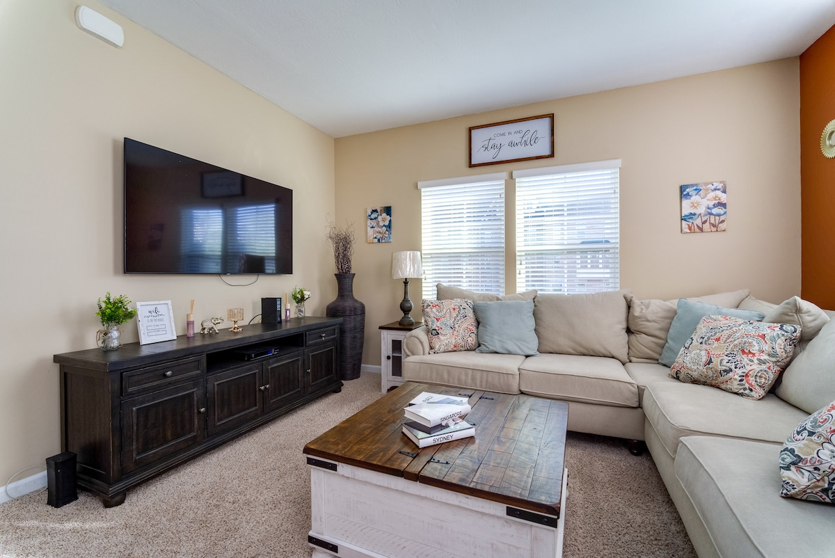 Benvenuti nella nostra splendida casa situata accanto al Beckett Ridge Golf Course! Con la sua planimetria unica e versatile, la nostra proprietà è perfetta sia per il tempo di qualità con i propri cari che per momenti di relax. Dopo una giornata trascorsa a esplorare attrazioni popolari come Top Golf, Ikea, Main Event, il cinema AMC e le vicine opzioni per lo shopping e la ristorazione all'aperto, la nostra casa offre un rifugio sereno per rilassarsi e ricaricarsi. Prenota ora e scopri il meglio del comfort, della comodità e del tempo libero.