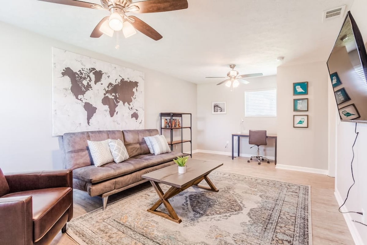 Goditi un soggiorno accogliente in un rifugio boho di metà secolo! Situato a Pleasant Ridge, si tratta di un appartamento con una camera da letto con bagno completo (doccia, senza vasca), angolo bar, minifrigo e microonde, tostapane/forno/friggitrice ad aria. Un letto matrimoniale e un ospite aggiuntivo possono dormire sul divano pieghevole. Lo spazio ha un ingresso privato e un parcheggio gratuito in una strada tranquilla. Cortile recintato e adatto agli animali domestici. Tre minuti a piedi dal parco, 7 minuti a piedi dal quartiere dei divertimenti locali.