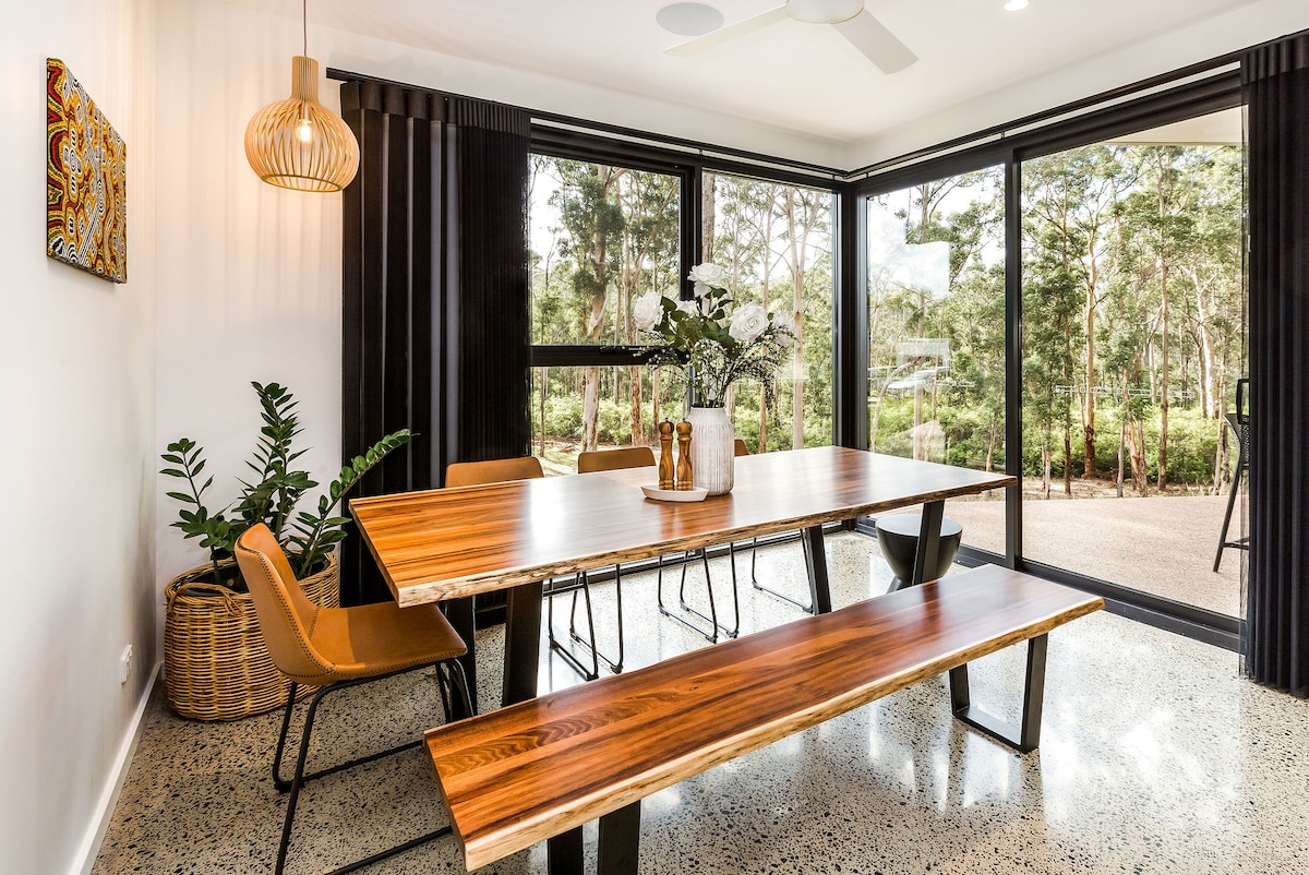 This memorable place is anything but ordinary. Newly built, with a spacious Loft bedroom - enjoy the views of near by native trees or lay in bed and star gaze through the roof window. A lot of thought has gone into the design of this home, with a cozy day bed built in under the stairs, full sized kitchen and stylish bathroom. Just a short walk down to the Margaret River, walk trails, and to town, we hope our place provides the perfect base for your holiday.