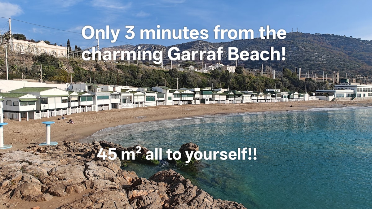 Suite privada de 45 m² con terraza — todo el espacio es solo para ti. Amplia, luminosa y completamente independiente, a solo 3 minutos a pie de la playa en el encantador pueblo de Garraf. 📍 Ubicación privilegiada para combinar playa, naturaleza, mar y escapadas a Barcelona o Sitges. Perfectamente conectada: Barcelona (30 min), Sitges (7 min) y aeropuerto (15 min en coche). ☀️ Disfruta del sol la mayor parte del año — incluso en invierno podrás desayunar en la terraza o ir a la playa.