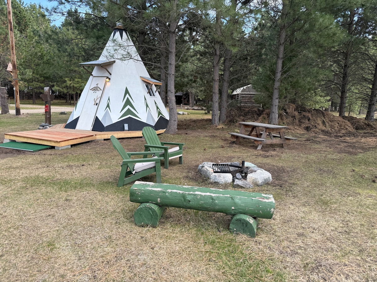 experience the big sky country in this wood structure Tipi. Our tipi cabin is insulated and has a heater, locking door, electricity, WiFi, and queen bed. Only steps away from our shower building. This is one of 9 unique Glamping sites we have on our property all nestled in the pine trees, yet only 3 miles to the town of Columbia falls.