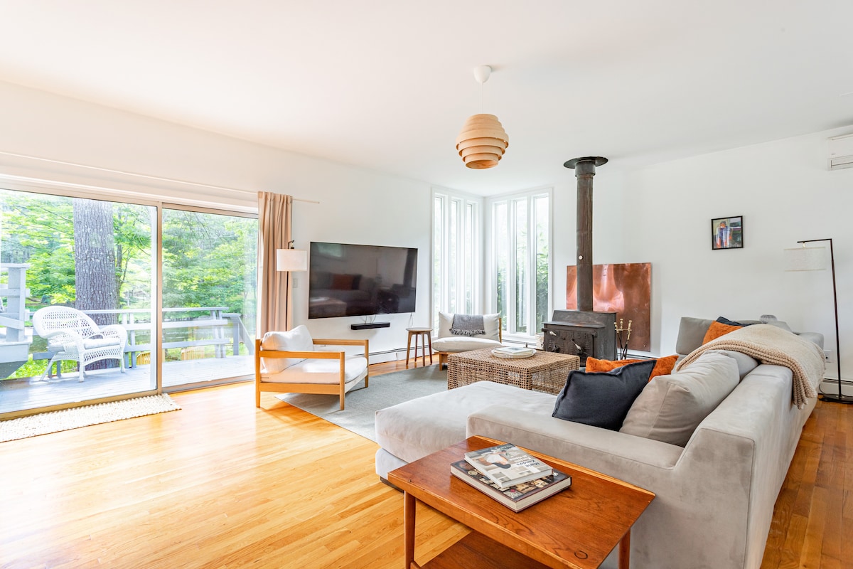 Cerchi una vacanza in montagna? Vieni a rifugiarti nel nostro cottage Poconos, che combina perfettamente comfort moderni e fascino rustico in un ambiente privato e boschivo. Esplora sentieri escursionistici nelle vicinanze, concediti ristoranti locali, sci, pesce, barca o semplicemente goditi la tranquillità della natura seduti accanto al fuoco! Godrai anche di Wi-Fi veloce, aria condizionata e un camino interno a gel.