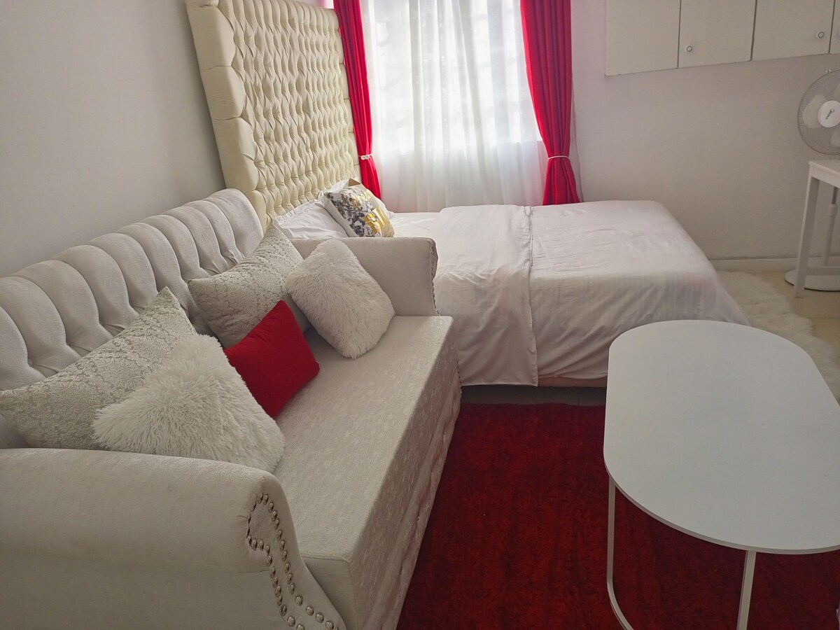 Benvenuto nella mia minicasa a Kileleshwa, Nairobi! La casa è composta da una camera da letto, soggiorno, angolo cottura, bagno e spazio di lavoro. Ha un bellissimo pavimento, un'illuminazione naturale e interni incredibili. Si trova a un minuto a piedi dai mezzi pubblici 17 minuti per Nairobi CBD. C'è 24 ore di sicurezza.