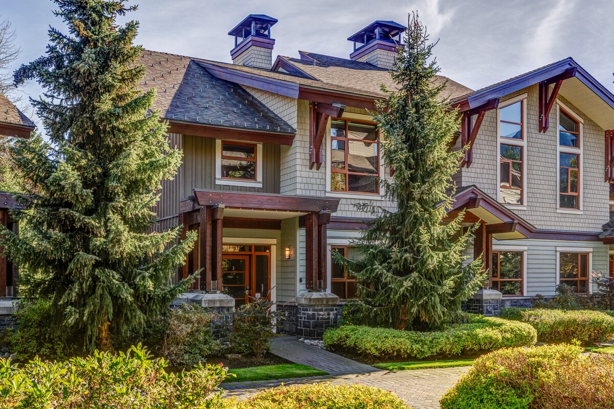 Benvenuto! Questo spettacolare chalet privato di Whistler di 246 metri quadrati con 4 camere da letto e 3,5 bagni può ospitare comodamente 9 persone e dispone di una cucina da chef completamente attrezzata, una grande vasca idromassaggio privata, zone pranzo interne ed esterne, barbecue, doccia a vapore, lavatrice e asciugatrice, aria condizionata, ampio spogliatoio e un garage privato per 2 auto, per riporre biciclette e attrezzatura. Situato a Whistler Village North, a 2 minuti a piedi da Nesters. Goditi il tuo chalet privato con vista sugli alberi e serenità lontano dal rumore del villaggio, a pochi minuti dal cuore dell'azione!