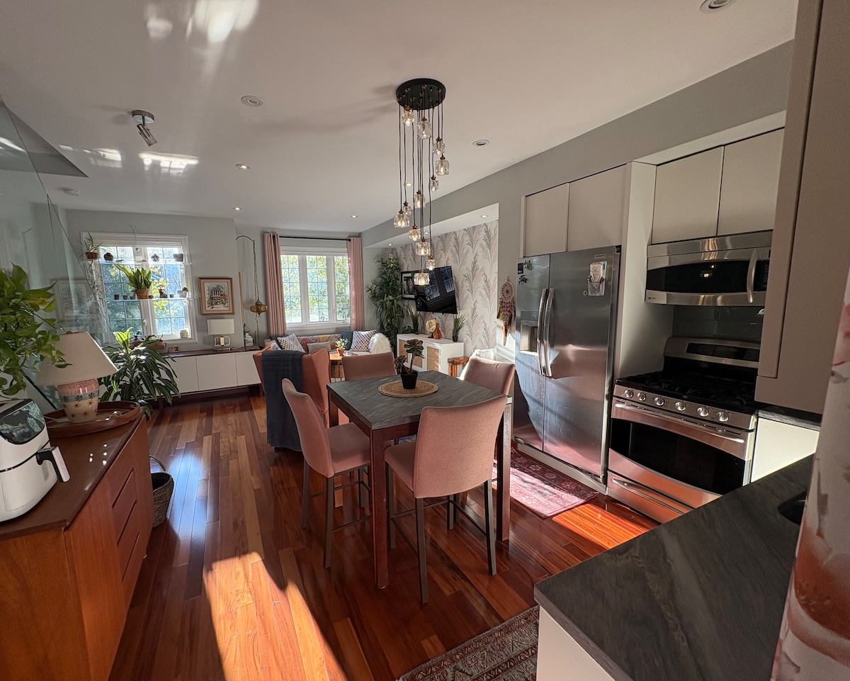 Kick back and relax in this calm and stylish space, exceptionally adorned with amazing artwork throughout! This beautiful townhouse is located minutes to the 401 and 407 highways, GO Train, shopping, waterfront trails, movie theatres and tons of restaurants! Whether looking for a family getaway or visiting from abroad, this is the perfect home for you with more than enough space to accommodate all your friends and family for a short or long term stay. Early check-in and late checkout ✨