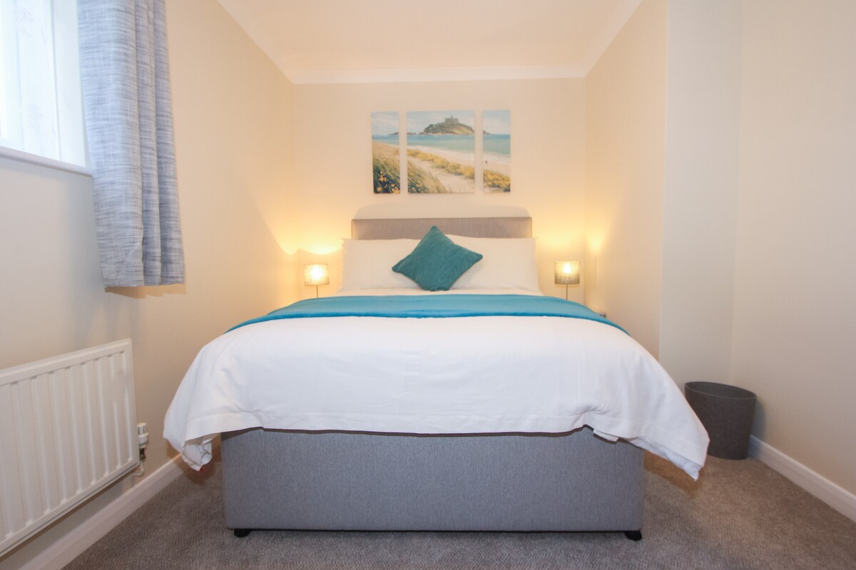 Un delizioso monolocale contemporaneo al primo piano, vicino al centro di Wadebridge e al famoso Camel Trail. Siamo in una strada privata, con parcheggio fuori strada. Uno spazio molto confortevole con un letto king-size e un bagno privato con una lussuosa cabina doccia. Il tuo balcone si affaccia a sud-ovest Divano in pelle per guardare la Smart TV con Netflix/Amazon Prime incluso, che puoi guardare dal divano o girarti per guardare a letto. Zona cucina, tostapane, bollitore, frigorifero, forno a microonde e caffettiera.