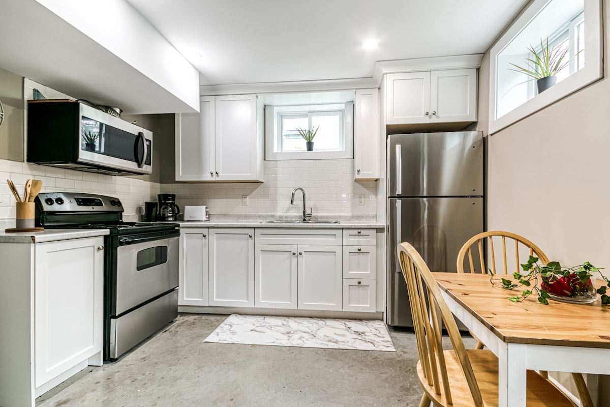 Welcome to our centrally located private unit. Big windows to brighten the fully stocked kitchen, an entertainment space with a 55” smart tv, board games, record player, a comfortable bedroom with a Queen bed & AC unit, and large bathroom. Enjoy the private outdoor area beside your personal parking spot. Kitchen includes: - Toaster - Keurig Coffee Machine + Reusable Cups - Stove - Kettle - Pots and pans - Utensils and other kitchen ware - Microwave - Mini Fridge with a freezer compartment