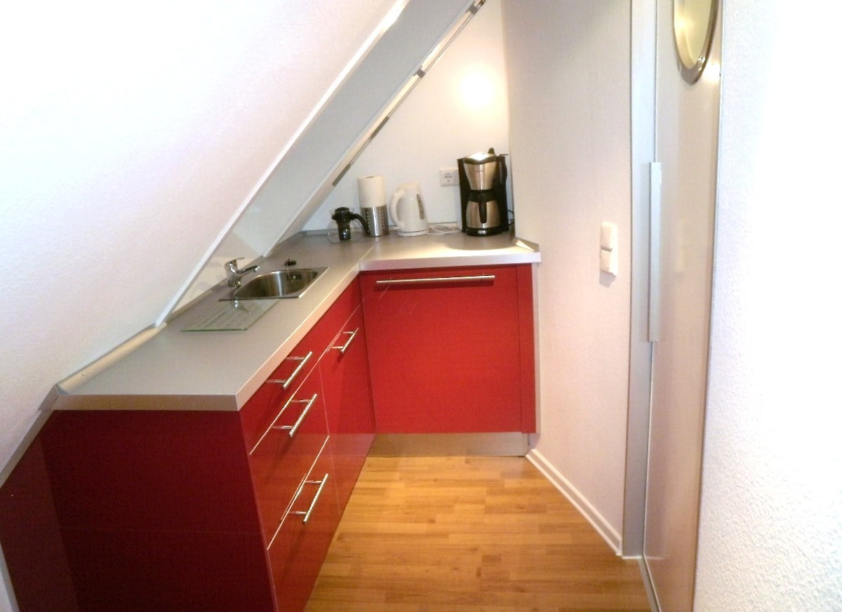 Appartamento privato con bagno per 1-2 persone (si prega di specificare il numero al momento della prenotazione) nel vivace Flingern ma tranquillo. Il centro città e il centro storico, così come la stazione ferroviaria e l'aeroporto/la fiera sono raggiungibili in poche fermate. Chi cerca il verde ha anche poche fermate da percorrere. Nei caffè circostanti, i ristoranti e i negozi possono iniziare ogni giorno in modo rilassato, trascorrere e terminare con un pasto magnifico.