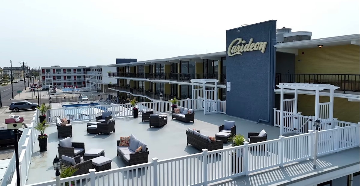 Ti diamo il benvenuto al The Coastal Quad, il primo resort tascabile del New Jersey! Prenoterai un soggiorno in una delle quattro lussuose suite con 1 camera da letto, quindi ogni visita è una nuova avventura! Potrai godere della tua vasca idromassaggio privata, del focolare, del barbecue, del cortile recintato e dell'accesso a un campo da minigolf condiviso sul tetto, a una sala giochi retrò, a una palestra completa con sauna, a un ufficio, a una lavanderia e altro ancora. Situato a pochi passi da una tranquilla spiaggia della baia e a breve distanza in auto da Cape May e Wildwood, questo è il resort più emozionante della costa!