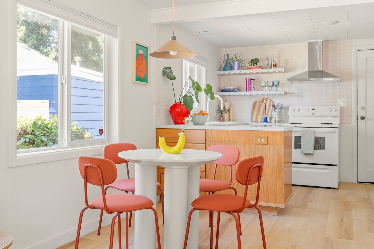 Il Backyard Bungalow, presentato nel tour ADU di Portland, è il rifugio perfetto in tempi incerti. Con il suo percorso appartato e indipendente dalla casa principale, offre tutta la privacy che si desidera. Una volta dentro, tuttavia, il soffitto a volta di 4,8 metri e la zona giorno open space illuminata dal sole sorprendono con un senso di spaziosità e comfort. La sua posizione interna a sud-est è a pochi passi da ristoranti e caffetterie di Division Street, chioschi di cibo di strada, parchi e aree giochi, oltre a essere un "paradiso per i ciclisti".