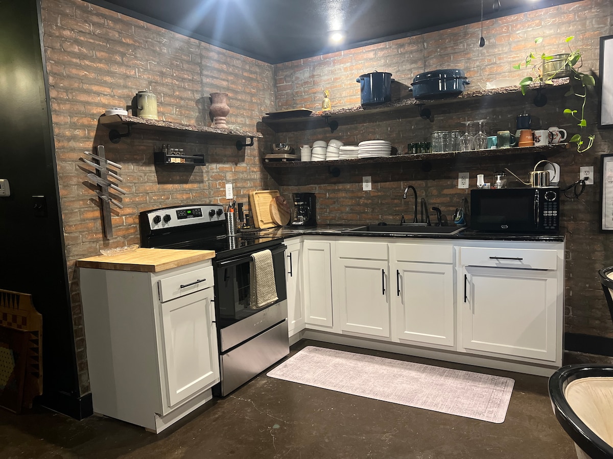 Fuggi dalla routine quotidiana in questo nuovo appartamento progettato con un'atmosfera da speakeasy degli anni '30. Nascosto in una zona privata e boscosa, questo posto è una base ideale per esplorare. Sei a pochi minuti da rinomate cantine locali, un casinò, innumerevoli avventure all'aria aperta e destinazioni per matrimoni e campus. Attenzione: questa struttura si trova in una fattoria di fiori in attività. Il suono o la vista occasionale di attrezzature agricole in funzione fa parte del fascino! Ci impegniamo a garantire un'esperienza tranquilla ai nostri ospiti.