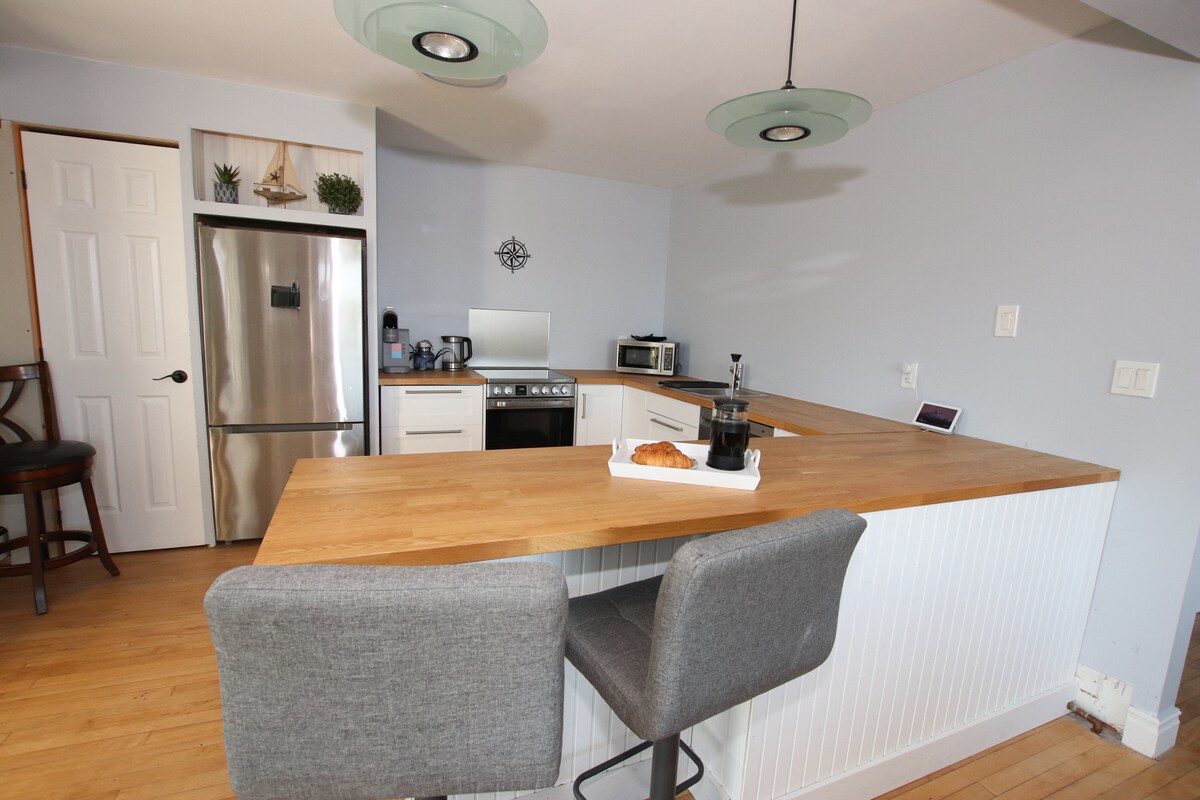 Questo luminoso chalet/chalet sull'oceano è appartato, tranquillo e immerso nella natura, a 20 minuti da Halifax. Ci sono 2 camere da letto, 2 bagni e 2 piani, con una terrazza proprio sull'oceano. Lo chalet è a pianta aperta, moderno e rifinito con pavimenti in legno massello, dettagli in rame e tutti i comfort di base. La posizione lo rende ideale per escursioni, yoga, relax e vita sull'oceano. La casa è di 120 metri quadrati. C'è una pompa di calore per il riscaldamento e il raffreddamento; la stufa a legna non è a disposizione degli ospiti.