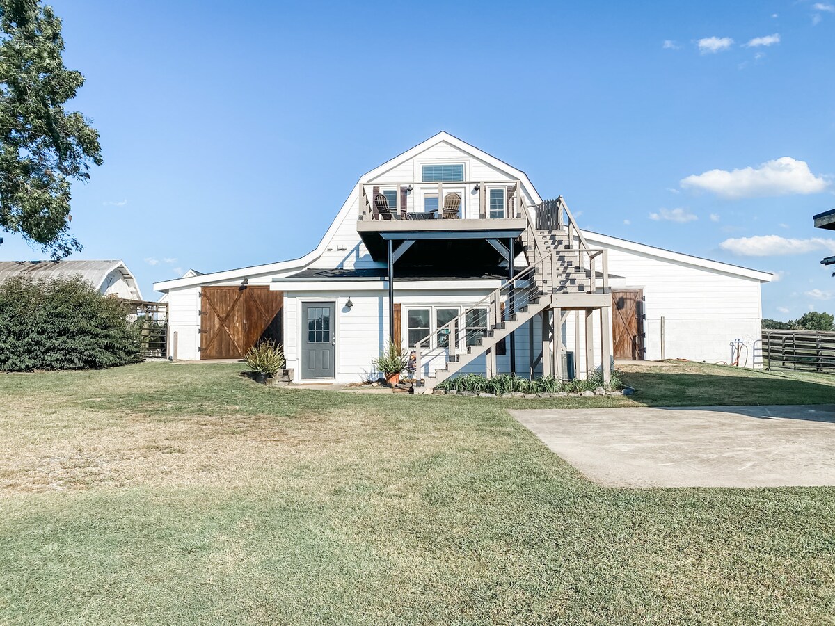 Questo spazio è così straordinario che non ti sarà facile dimenticarlo. Soggiorna nel nostro appartamento con 2 camere da letto arroccato in cima a un fienile di famiglia funzionante. Questo appartamento recentemente ristrutturato offre un rifugio tranquillo con viste infinite su cavalli, polli, mucche e stagni appena fuori città, nella fattoria Grace Meadows.