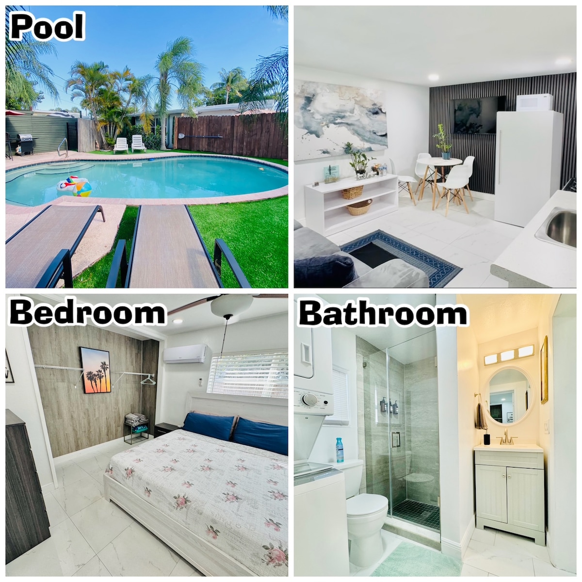 Questo monolocale recentemente ristrutturato si trova a soli 15 minuti di auto da e per l'aeroporto FLL, ideale per una coppia (massimo 2 persone). Si trova a 20 minuti di auto dall'iconica Wave Wall Beach di Las Olas. Questo monolocale, sebbene adiacente a un edificio con più unità abitative, offre la massima privacy con tutte le porte di accesso all'esterno e l'accesso esclusivo tramite tastierino per te e i tuoi compagni di viaggio. Include: bagno completo, mini frigo/forno a microonde, letto matrimoniale grande, TV, scrivania e sedia Check-in: 15:00 Check-out: 10:00