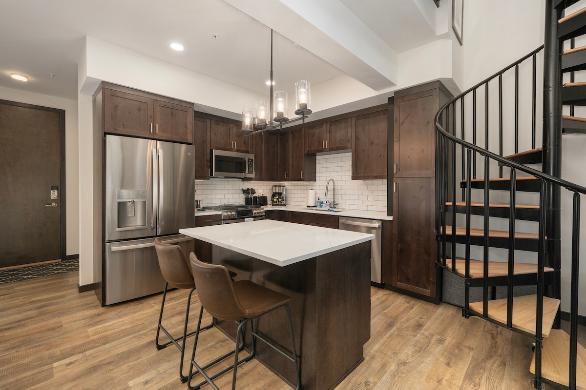 Ti sentirai come a casa nel cuore di questo appartamento ristrutturato. Sarai sulle piste in 2 fermate di autobus con partenza appena fuori. La città ti aspetta sulla Main Street, di fronte a Cooper Creek e al Rendezvous Event Center. Organizza banchetti in stile familiare con la cucina completamente attrezzata e cena con un massimo di nove persone. Rilassati nelle vasche idromassaggio, sull'enorme divano vicino alla TV digitale via cavo a grande schermo con servizi di streaming, sulla terrazza e nelle vasche idromassaggio. Letto matrimoniale king size sontuoso nella camera da letto principale. Armadietti per gli sci vicino all'ascensore.