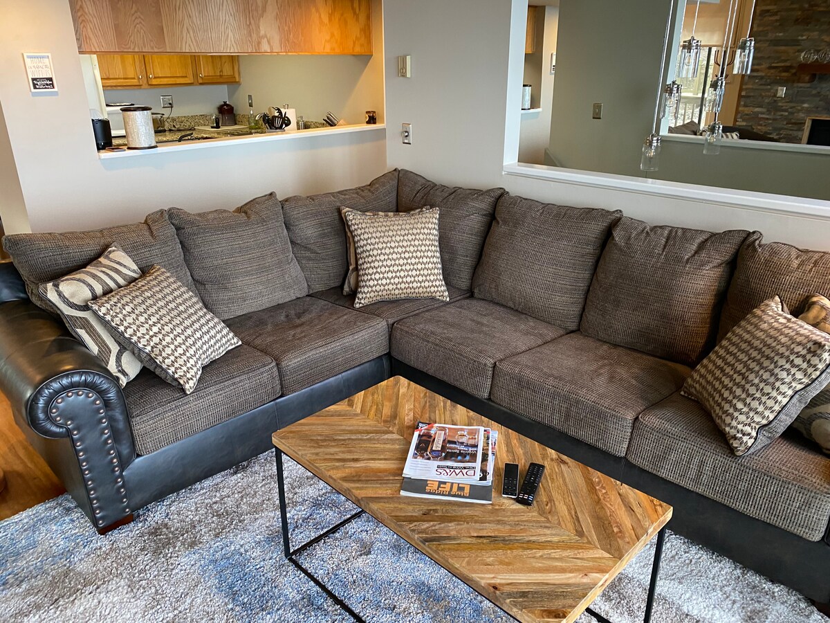 Dal momento in cui entri, questo appartamento offre infinite opportunità per rilassarsi e ritirarsi. La vista mozzafiato sulle montagne che si gode dalla terrazza posteriore offre l'ambiente ideale per una fuga romantica, un weekend tra ragazze o per trascorrere il tempo necessario a ricaricarsi. Questo alloggio con una camera da letto con letto king-size, una cucina completamente attrezzata e arredi artistici si trova al terzo piano di The Ledges. È il luogo perfetto per chi ama sciare, fare escursioni, giocare a golf o assaggiare i sapori delle cantine locali.