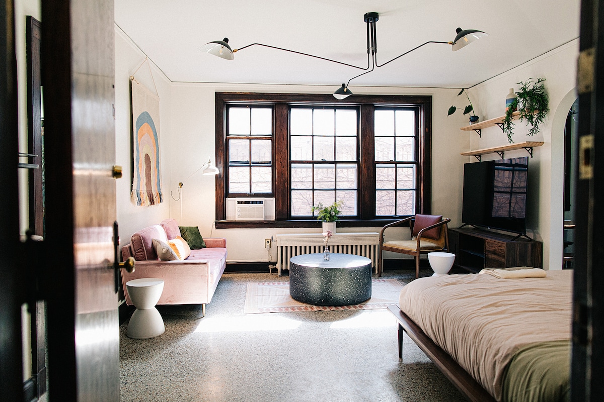 Questo monolocale progettato da un architetto è inondato di luce naturale, con lucernari e un angolo per la colazione con una finestra panoramica. Dotato di un bagno di lusso con cabina doccia, questo confortevole spazio offre tutti i servizi perfetti per una breve vacanza nel weekend o un viaggio di lavoro di una settimana. Il monolocale confina con una casa ed è accessibile salendo una rampa di scale attraverso un ingresso esterno indipendente. Situato proprio sulla collina, a 5 minuti a piedi dal centro di Middleton e a 15 minuti di auto dall'Università del Wisconsin e dal centro di Madison.