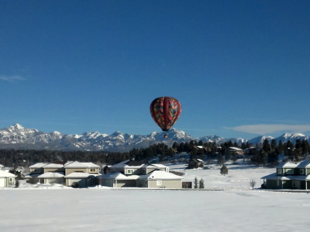 Ti diamo il benvenuto nella nostra pensione! Situata nel lotto inferiore della nostra proprietà, questa nuovissima casa di 74 metri quadrati ha tutto il necessario per godersi la nostra affascinante città di montagna. Questo piccolo castello personalizzato ha molte finestre per ammirare la vista sulle montagne ed è stato costruito con materiali locali e di qualità. Puoi uscire dalla porta sul sistema River Walk (a soli due isolati dal fiume San Juan) o goderti una passeggiata di 400 metri sul marciapiede lastricato fino alle nostre sorgenti termali famose in tutto il mondo e al cuore del nostro centro città.