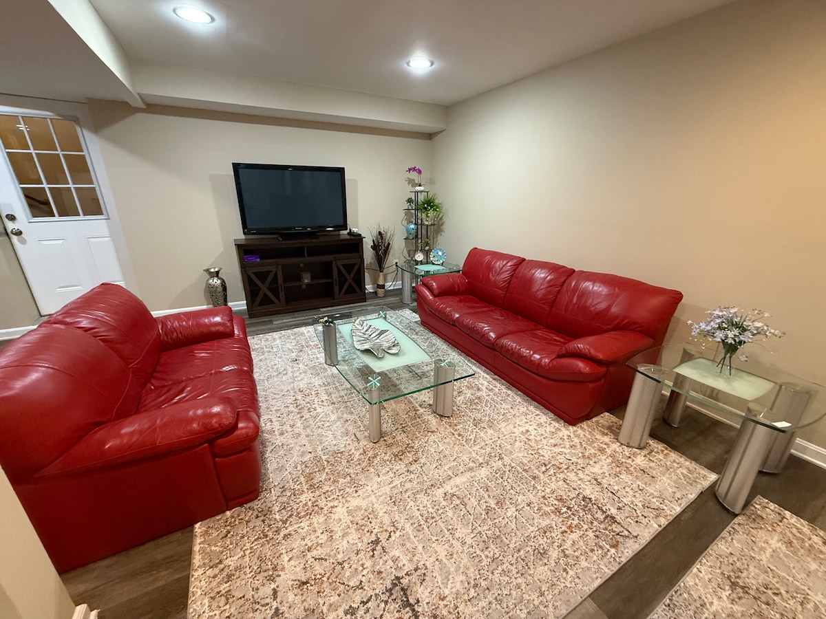 Ti diamo il benvenuto nel nostro elegante appartamento seminterrato, perfetto per i viaggiatori moderni. Che tu sia qui per lavoro o per svago, questo spazio ha tutto ciò che ti serve. Situato a pochi minuti dalla metropolitana, dall'aeroporto e dai principali centri di lavoro. L'appartamento dispone di una scrivania con doppio monitor, tastiera, mouse e connessione internet da 1 GB. Di notte, rilassati nel morbido letto king-size. Un divano futon convertibile con una TV da 65 pollici ti aspetta per le tue sessioni di binge-watching. Una lavatrice/asciugatrice e una cucina completa, con frigorifero e fornelli, completano lo spazio.
