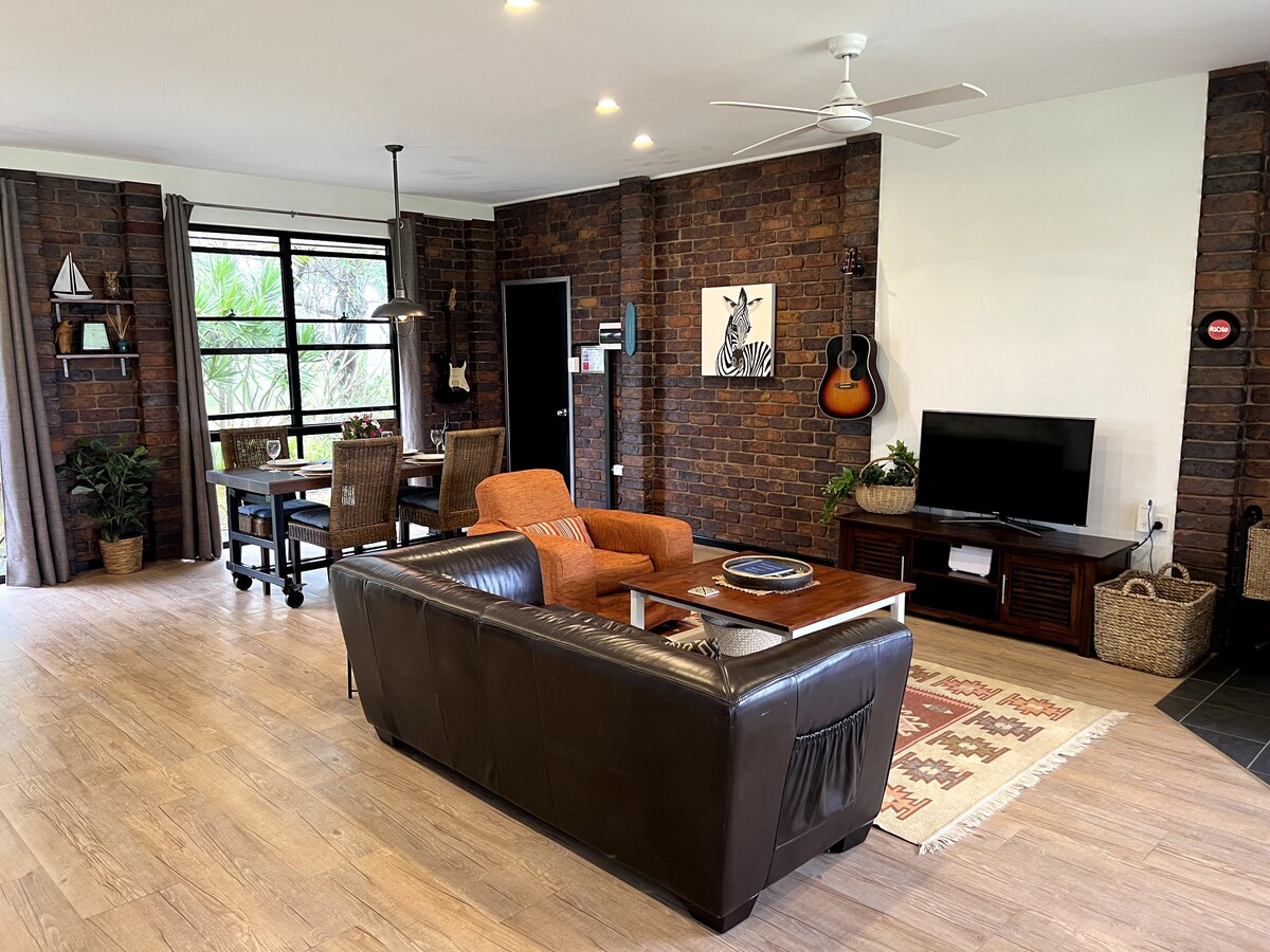 Il Lazy Llama Evans Head è un cottage sul mare. La combinazione perfetta di posizione e stile, circondato da lussureggianti giardini tropicali e dal suono dell'oceano. Il Lazy Llama è il rifugio idilliaco per coppie, famiglie o gruppi di amici. Metti via le chiavi della macchina con caffetterie, negozi e spiagge di sabbia bianca a pochi passi dalla tua terrazza. Goditi il sole a bordo piscina, lasciati cullare dalla brezza marina sulla sedia a sdraio e goditi le serate miti vicino al focolare.
