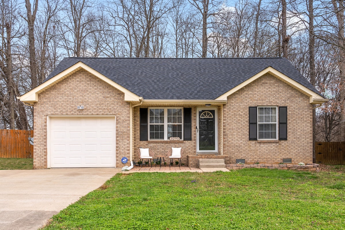 Prenditi una pausa e rigenerati in questo tranquillo cottage per gli ospiti situato sulla storica Greenwood Avenue, a 1,6 km dal centro e dall'APSU. Questa pittoresca casa è ricca di servizi e ti aspetta! Divertiti a cucinare nella cucina attrezzata e cena davanti al camino elettrico con impostazioni a distanza. Un sacco di giochi e Roku TV per passare il tempo. La camera da letto matrimoniale è ideale per 2 adulti, mentre il soggiorno dispone di 2 letti ottomani singoli per bambini. Bagno completo, lavanderia e una scrivania per il professionista che lavora.