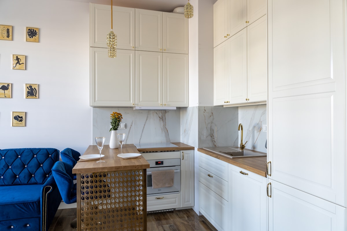 Un lussuoso appartamento appena ristrutturato nel centro di Breslavia. Situato all'ultimo piano di una palazzina con ascensore. Situato a pochi minuti a piedi (400 metri) dalla Piazza del Mercato di Breslavia. Un luogo ideale per famiglie e persone in cerca di tranquillità e comfort in un interno unico. Balcone con vista sullo skyline cittadino. Internet in fibra ottica gratuita, SMART TV 4K 55", aria condizionata. Parcheggio gratuito in un garage interrato sorvegliato.