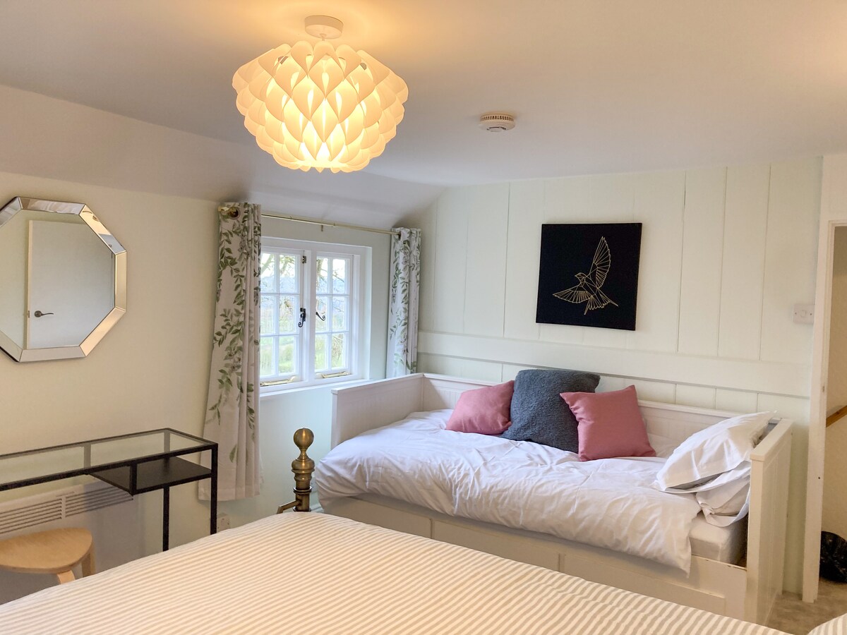 Our Idyllic cottage which is set in the country side overlooking the north downs, which offers two guest accommodation. It is separate from the main family home which offers a cosy/secluded space with an open-plan kitchen and living area. It is a relaxing place to spend many an hour watching the wildlife and enjoying the sights and sounds of Kent We have installed for your enjoyment day & night vision cameras so you can watch the birds and ducks by day and badgers and foxes at night.