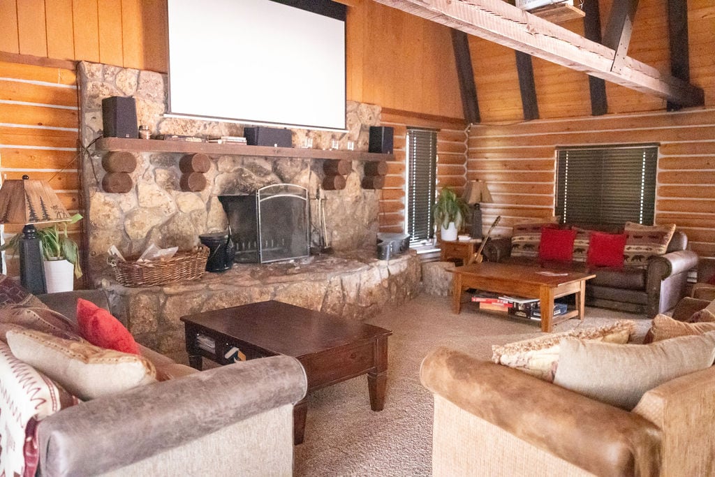 Questo spazioso rifugio di montagna unisce il fascino rustico al comfort moderno. La camera da letto principale mansardata dispone di un letto king-size, mentre nel soggiorno sono presenti 3 divani letto matrimoniali. Goditi una cucina completamente attrezzata con tutto il necessario, una lavastoviglie e un tavolo da pranzo. Rilassati nella vasca da bagno, sotto la doccia o vicino al focolare vicino al ruscello. I servizi condivisi includono una sauna, una lavanderia, una sala pesi e un'area comune. Passeggia tra i sentieri, vai a pescare e raggiungi il Wagon Box Restaurant. Cervi e tacchini selvatici spesso vagano in questo ambiente tranquillo.