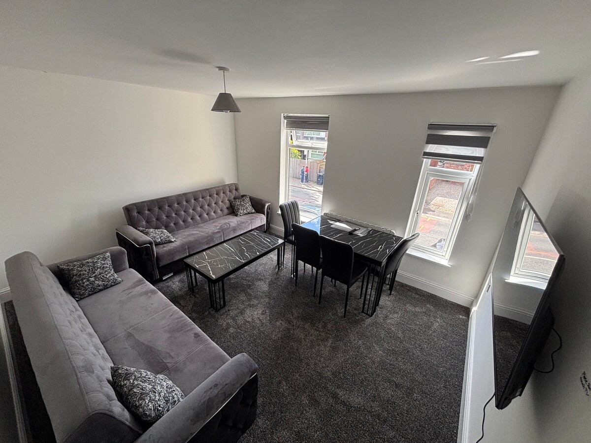 Questa casa è ideale per chi cerca un alloggio elegante e spazioso con 2 camere matrimoniali. Vicino all'aeroporto di Manchester, a 2,5 km di distanza e a soli 20 minuti dal centro di Manchester. La struttura, che può ospitare fino a 4 persone, è stata ristrutturata secondo standard elevati e offre uno spazio contemporaneo ma accogliente, dove potrai rilassarti e divertirti. La struttura è dotata di un moderno sistema di sicurezza e si trova alla fine di una strada senza uscita, in una via piuttosto residenziale, con 2 posti auto per i tuoi veicoli.