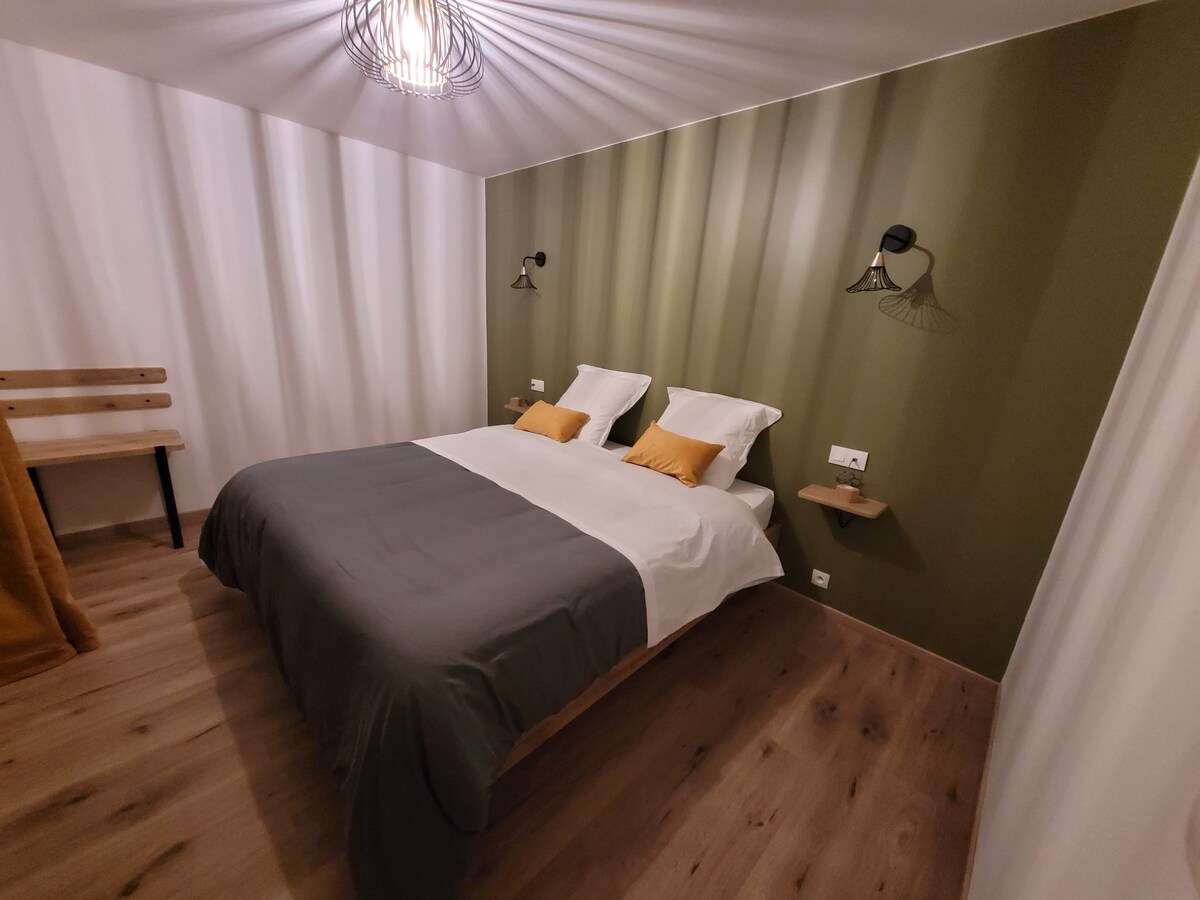 Benvenuti alla tana del lupo, alloggio 1 Appartamento di 50 m2 ristrutturato nel 2020, arredato e dotato di tutto il necessario per rendere il vostro soggiorno come a casa. Situato in un posto tranquillo e rilassante. L'accesso è indipendente con terrazza e parcheggio privato (il parcheggio dispone di videosorveglianza) Cucina completamente attrezzata Soggiorno: divano letto 140/200, TV arancione e Netflix inclusi Camera da letto 1 letto matrimoniale 180/190 Bagno attrezzato: asciugacapelli, asciugamani, ecc.
