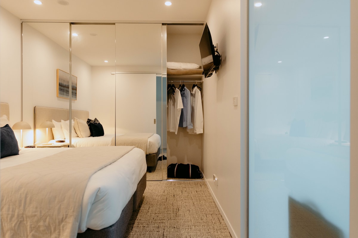Accedi a un mondo di stile, lusso e comfort in questo appartamento premium con una camera da letto e un bagno situato accanto al centro commerciale Chadstone. Camera da letto 1: Letto king-size (2 letti singoli su richiesta) Camera da letto 2: Letto king-size (2 letti singoli su richiesta) Balcone privato Zona lounge con comodo divano per coccolarsi e guardare la TV con SmartTV collegata ai normali canali TV e internet. Cucina completamente attrezzata con tutto il necessario per preparare un pasto o un piatto cucinato in casa da asporto con Uber Eats WiFi GRATUITO Lavatrice/Asciugatrice Asciugacapelli Ferro e asse da stiro 90 mq Max 4 persone (inclusi bambini)