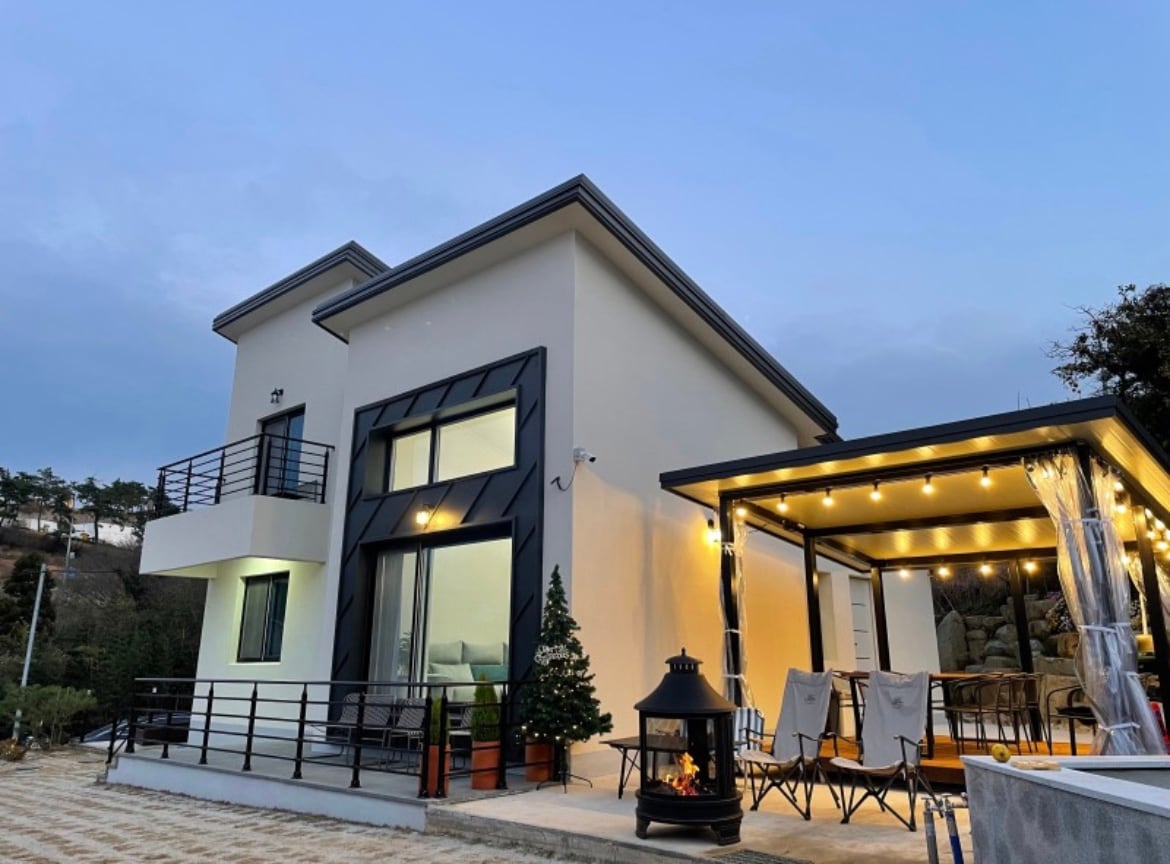 12월새롭게 바뀐 호텔식 감성숙소*제주돌담 자쿠지 *넒은정원앞 바다뷰*독채풀빌라 뮤즈하우스