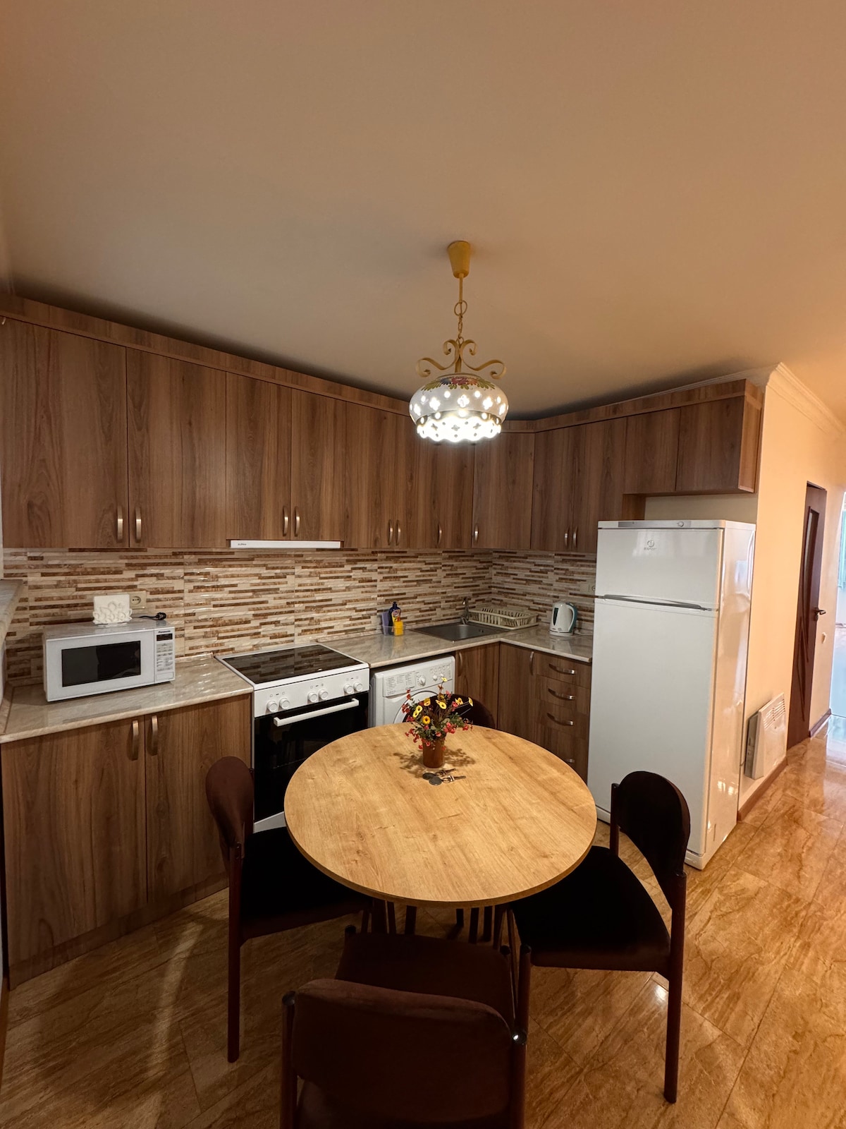 Il mio appartamento si trova nel cuore di Yerevan, a soli 500 metri da Piazza della Repubblica. Ristrutturato di recente, offre mobili moderni, servizi completi e un soggiorno luminoso. Situato all'8° piano con ascensore, dispone di due camere da letto, un soggiorno con cucina e un bagno. Il punto forte è un balcone privato con una splendida vista, perfetto per il caffè del mattino. Circondato da negozi, ristoranti e attrazioni, è ideale per famiglie e viaggiatori che vogliono godersi la calda atmosfera di Yerevan.