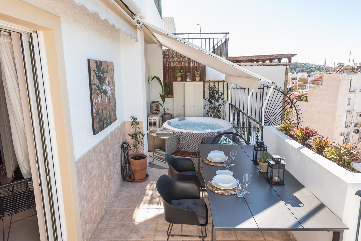 Attico con vasca idromassaggio e vista sull'Acropoli